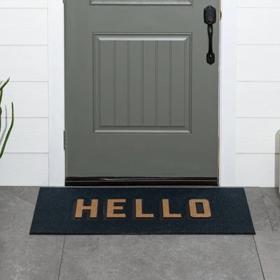 Complete the look of your outdoor space with this ‘Hello’ Doormat from Threshold™. This rectangular doormat is made from lightweight material to help keep your space clean, while the rubber backing helps prevent it from slipping or sliding. Featuring the text “Hello” on a blue backdrop for a welcoming look, the high-pile doormat easily blends in with any decor color palette.