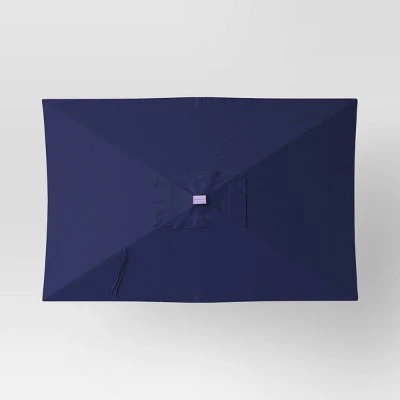 This 10-Foot x 6-Foot Rectangular Solar Market Patio Umbrella with Black Pole from Threshold™ is a great choice for your outdoor space. Made with solid-colored, fade-resistant fabric for lasting outdoor use, the umbrella has a black pole and aluminum and steel frame and is compatible with centered pole umbrella bases (sold separately). It’s easy to set up with no tools needed, and with a crank lift and push-button tilt, you can effortlessly adjust the umbrella to maintain the perfect shady spot.