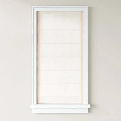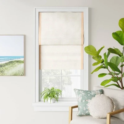 Add style to your window while filtering in natural light with this Cordless Roman Linen Blend Blind and Shade from Threshold™. This stylish roman blind brings a modern twist to your interiors. Made from a linen-blend fabric in a natural tone, it easily mixes with your existing decor. The light-filtering shade lets just the right amount of light in while enhancing privacy, while the cordless retraction mechanism makes it easy to open and close the window shade. You can install it in your bedroom, living room, kitchen or anywhere else to give your space a clean, contemporary look.