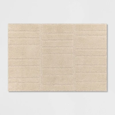 Give your home a comfy, stylish upgrade with this Washable Uneven Blocks Accent Rug from Threshold™. Made from soft tufted fabric with a medium pile height, this rectangular area rug provides cozy comfort underfoot. The fade- and stain-resistant construction offers lasting use, and skid-resistant latex backing helps to keep it from sliding around your floor. Featuring an uneven block pattern for a stylish look, this rectangular accent rug blends seamlessly with just about any existing decor.