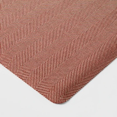 Stand comfortably on any hard surface with this Herringbone Rust Comfort Mat from Threshold™. This rectangular comfort mat is great to use in your kitchen, laundry room, in front of your standing desk or any other high-traffic place. It features a rust herringbone design for classic style. This floor mat with a flat pile profile provides extra comfort while standing on hard floors, and is easy to wipe clean.