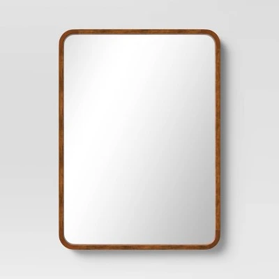 Add more expanse to any room with this Rounded Corner Wood Wall Mirror from Threshold™. This rounded rectangle wall mount mirror makes a decorative and functional accent anywhere in your home. It features a recessed glass center to create the illusion of extra space, and a natural wood frame for easy coordination with your existing decor. Use this piece as a functional vanity mirror or as an accent above the sideboard or console in your entryway or living room to decorate your space.