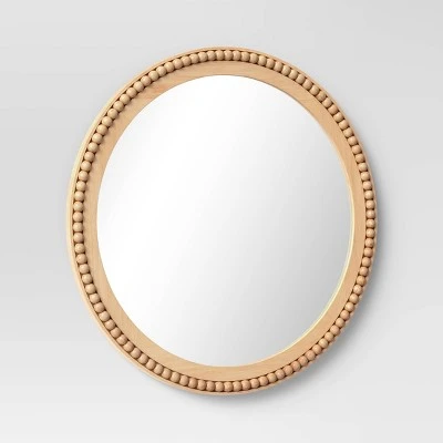28″ Dia Round Wooden Beaded Wall Mirror Natural – Threshold™