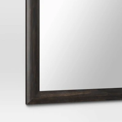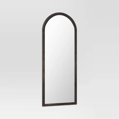 Enhance the beauty of any room in your home with this Bullnose Floor Mirror from Threshold™. This rectangular floor mirror features an arched top for a distinct look. Set in a black pinewood frame, it coordinates well with a wide variety of decor styles. Simply lean it against the wall in your living room, bedroom or guest room for decorative and functional use.