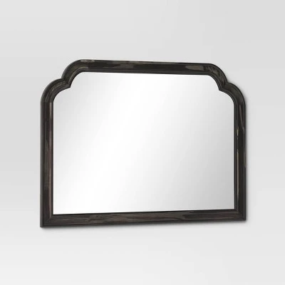This 36-Inch by 26-Inch French Country Mantel Mirror from Threshold™ serves as an anchor piece that you can accessorize with other accent pieces on your mantel. The novelty-shape mirror is encased in a sleek wooden frame with a sculptural, arched top to lend graceful French farmhouse-inspired vibes to your interiors. As decorative as it is functional, this versatile mirror easily adapts to your existing decor and makes a space look bigger and brighter by bouncing the light. Beyond your fireplace mantel, you can hang this reflective mirror above your dresser, in your living room or against the wall opposite a window with a view for a dramatic effect.