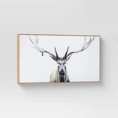This 47″ x 24″ Deer Framed Wall Canvas from Threshold brings modern flair to your interior. A must-have addition to any room, this framed wall art features a stunning deer — giving your wall a little personality without overwhelming the decor in the room. This decorative wall art is encased in a sleek wood-like frame that offers clean style. Additionally, the neutral design seamlessly blends with any decor, making for an easy addition with plenty of flair to match.