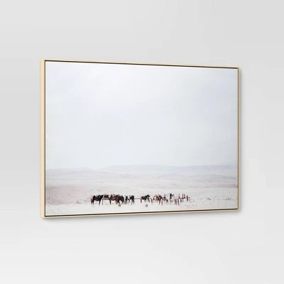 Bring the beauty of endless skies to your space with the 60″ x 40″ Plains Horses Framed Wall Canvas by Threshold™. This stunning artwork features graceful horses set against the backdrop of expansive plains, evoking a sense of freedom and connection to nature. Encased in a stylish pine frame, it seamlessly blends rustic charm with modern elegance. Easy to hang and instantly captivating, the 60″ x 40″ Plains Horses Framed Wall Canvas by Threshold™ transforms any space into a serene escape.