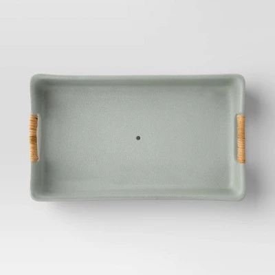 7.09" Rectangular Earthenware Tray With Cut-Out Skin Rattan Weaving Handle Heathered Green - Threshold™ Designed With Studio McGee -Threshold Home Decoration GUEST c5dca501 de1d 4e57 a48b 036f3a80b56b