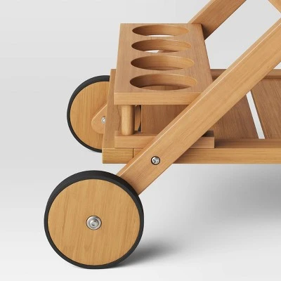 Whether you’re throwing a backyard barbecue or enjoying the night with family, this Bluffdale Bar Cart/Island from Threshold™ designed with Studio McGee will help you serve in functional style. Designed with two shelves, four round holders and a removable tray with handles, this beautiful eucalyptus wood bar cart offers plenty of space for your drinkware, bottles, food and more. The built-in handle and caster wheels make it easy to move outdoors and back for easy entertaining.