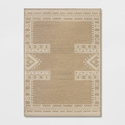 Update your patio space with this Border Detail Outdoor Rug from Threshold™. This rectangular area rug features an Aztec-themed border detail on a neutral backdrop for an attractive look. The anti-slip spray latex backing helps prevent the rug from slipping, even when wet. Plus, the flat pile construction offers easy maintenance and care. You can place it under your outdoor furniture for a warm and inviting look.