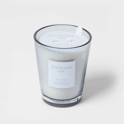 Elevate your space with this Colored Vase Glass with Dustcover Rainwater Lily Candle Gray – Threshold™. It features rainwater lily with notes of succulent peach to infuse your surroundings with a soothing scent. The glass vase adds a touch of elegance to any room. Whether you’re unwinding after a long day or setting the mood for a special occasion, this Colored Vase Glass with Dustcover Rainwater Lily Candle Gray – Threshold™ creates a relaxing ambiance.