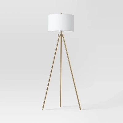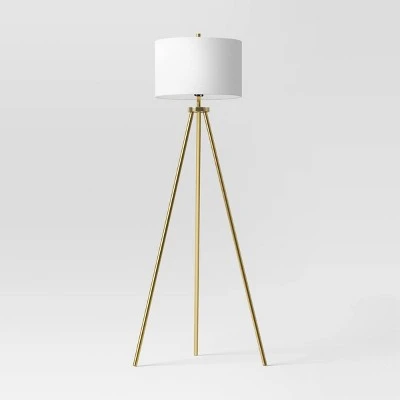 Add a new twist to your indoor lighting with this Ellis Tripod Floor Lamp from Threshold™. This floor lamp features a tripod-leg base and a white drum shade to finish off the crisp look. It’s gold-tone brass finish adds shine and effortlessly complements a range of decor styles. Place it next to a sofa in your seating area or living room to light up and decorate your space.