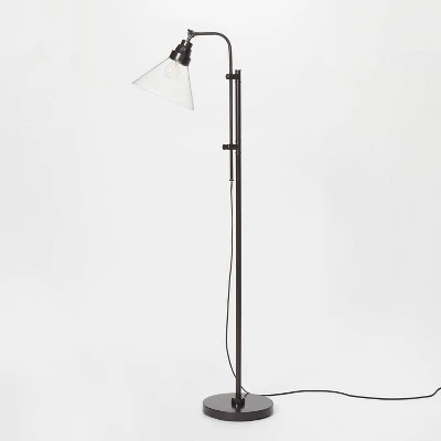 Bring practical and stylish lighting to your indoor space with this Glass Shepherd Floor Lamp from Threshold™ designed with Studio McGee. At 55 inches in height, this freestanding floor lamp has a sleek iron body atop a round base and a cone-shaped glass shade to add a touch of glam style to your space. You’ll appreciate its dimmer effect that lets you adjust the amount of light and helps change the visual appearance and mood of your space. Position it next to a desk for work, or right by your favorite chair for some nightly reading.