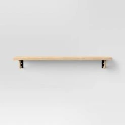24″ X 6″ Woodgrain Shelf With Wrapped Rattan Bracket Brown – Threshold™