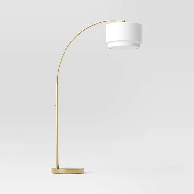 Knurled Metal Arc Floor Lamp With Tiered Shade Brass – Threshold™