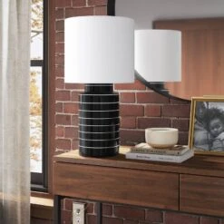Glossy Table Lamp Navy And White (Includes LED Light Bulb) – Threshold™