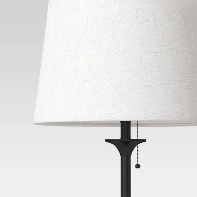 Give your living room or home office a cozy feeling with the Stick Floor Lamp from Threshold™. Standing at a height of 62.5 inches, this freestanding floor lamp has a slender, tubular body atop a turned metal base in a black finish for polished appeal. It’s paired with white linen drum-shaped lampshade that diffuses light and bathes your space in a soft glow, and it sports a pull chain for easy on/off convenience. Place it in your living room next to a sofa, beside your desk in the den, or in your entryway alongside the console for functional and aesthetic radiance.