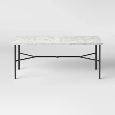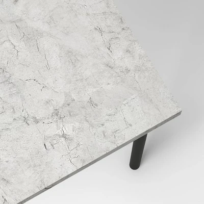 Host friends and family for comfortable and convenient outdoor entertaining with the Northmont 6-Person Rectangle Patio Dining Table from Threshold™ designed with Studio McGee. This stylish and spacious patio dining table features a mixed materials design with its black powder-coated steel frame and marble-look tabletop. The contrasting colors and textures make for a versatile design that you can pair with a variety of dining chairs to fit your own decor style.