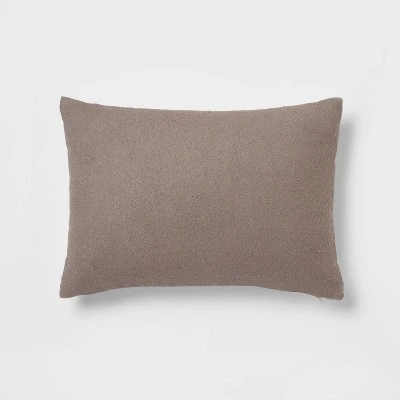 Spruce up the look of your resting spot while adding textured flair with this Oblong Boucle Decorative Throw Pillow from Threshold™. This solid-color throw pillow features a cream color at the back for contrasting flair that enhances the look of your space. Designed with a 100% cotton exterior, this oblong throw pillow feels soft and comfy as you lounge, while the hidden zipper closure allows easy insertion and removal of the pillow insert. You can use this decorative throw pillow as a solo accent piece on your sofa or armchair, or with other coordinating pillows to create a comfy and colorful resting spot.