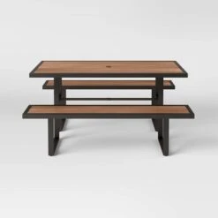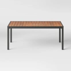 Bryant 6 Person Faux Wood Rectangle Patio Dining Table – Gray/Natural Wood – Threshold™