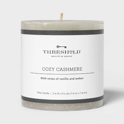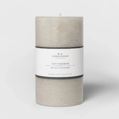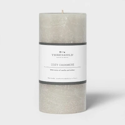 Set the right mood at home with the Pillar Cozy Cashmere Candle in Gray from Threshold. This candle will cover the area with the delightful fragrance and create a relaxed vibe. Smoke-less and mess-free, these pillar candles are a great decor piece to brighten your space. With a burn time of approximately 100 hours, you can store this candle and reuse as many times as you like.