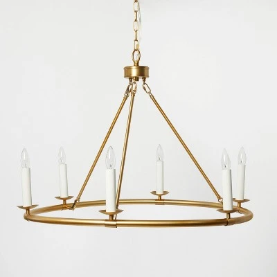 Illuminate your indoor space with this Ring Chandelier from Threshold™ designed with Studio McGee. Crafted from metal, this chandelier features a ring-shaped foundation encircled with candle-style luminaries to provide eye-catching lighting to your space. Whether you hang it over your dining room table or suspend it above the kitchen island, this chandelier makes a stylish addition to your indoor space.