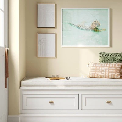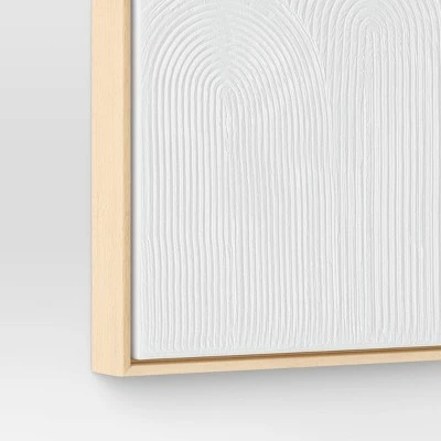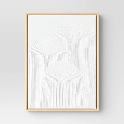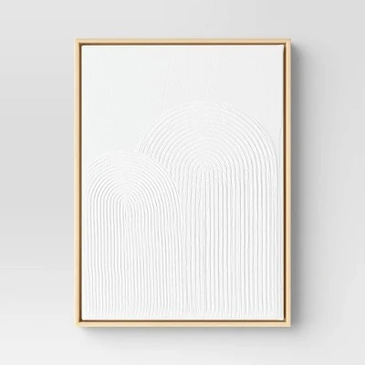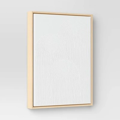 Add texture to your living space with the 12″x16″ Rainbow Arches Framed Embellished Canvas Set from Threshold. This set looks wonderful when displayed in a bedroom, dining room or home office. The monochrome tones look great when hung together or separately in different rooms, giving any wall a little personality. Each framed canvas from Threshold is encased in a sleek wood-finish frame that offers clean style and the design seamlessly blends with any decor.