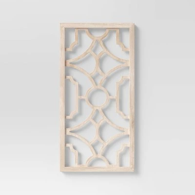 Give your space an elevated look when you add the Set of 2 Wood Lattice Wall Hangings from Threshold™ to your interior. These decorative lattices have an elegant look with their airy, carved detailing and light, natural hue. Display these wall lattices to give your room a more open feeling with a sophisticated touch. You can even customize them to suit your aesthetic by displaying small accents within the cutouts of the lattices for a bit more dimension. Threshold™: Looks like home, feels like you. Due to lighting and monitor differences, actual colors and finishes may vary slightly from what appears online.