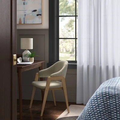 Help keep the light out with this Universal Blackout Window Curtain Panel from Threshold™. This blackout curtain panel features a solid white plain-weave construction for a simple, slightly textured look that blends seamlessly with a variety of decor styles. The blackout material stops the light from passing through and helps reduce outside noise, while the classic rod pocket and back tab allow for quick and easy installation.