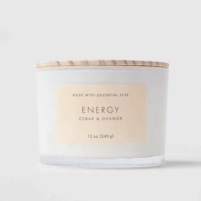 Lift your spirits with the refreshing, pleasant fragrance of the Wood Lidded Glass Wellness Energy Candle – Threshold™. This scented candle infuses your home with a blend of cedar and orange scents that create an inviting ambience you’re sure to appreciate. While the gentle light flickers and sends shadows across the walls, the glass exterior and round lid add to the overall vibe. Easy to display on a mantel or a side table, this scented candle is a must-have essential you’ll want to keep handy.